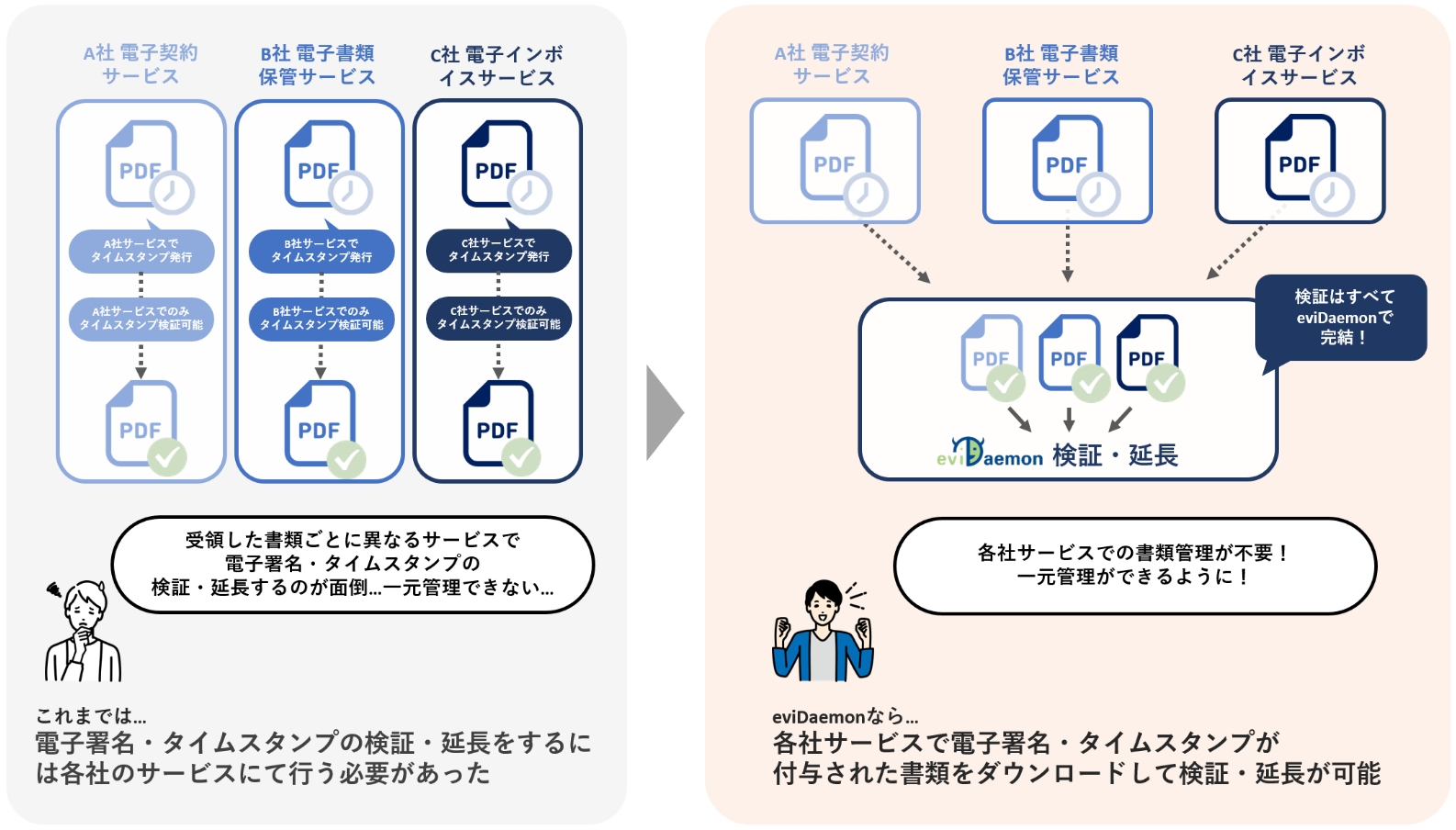 ■様々なタイムスタンプ・電子署名サービスで作成されたデータの一元管理が可能